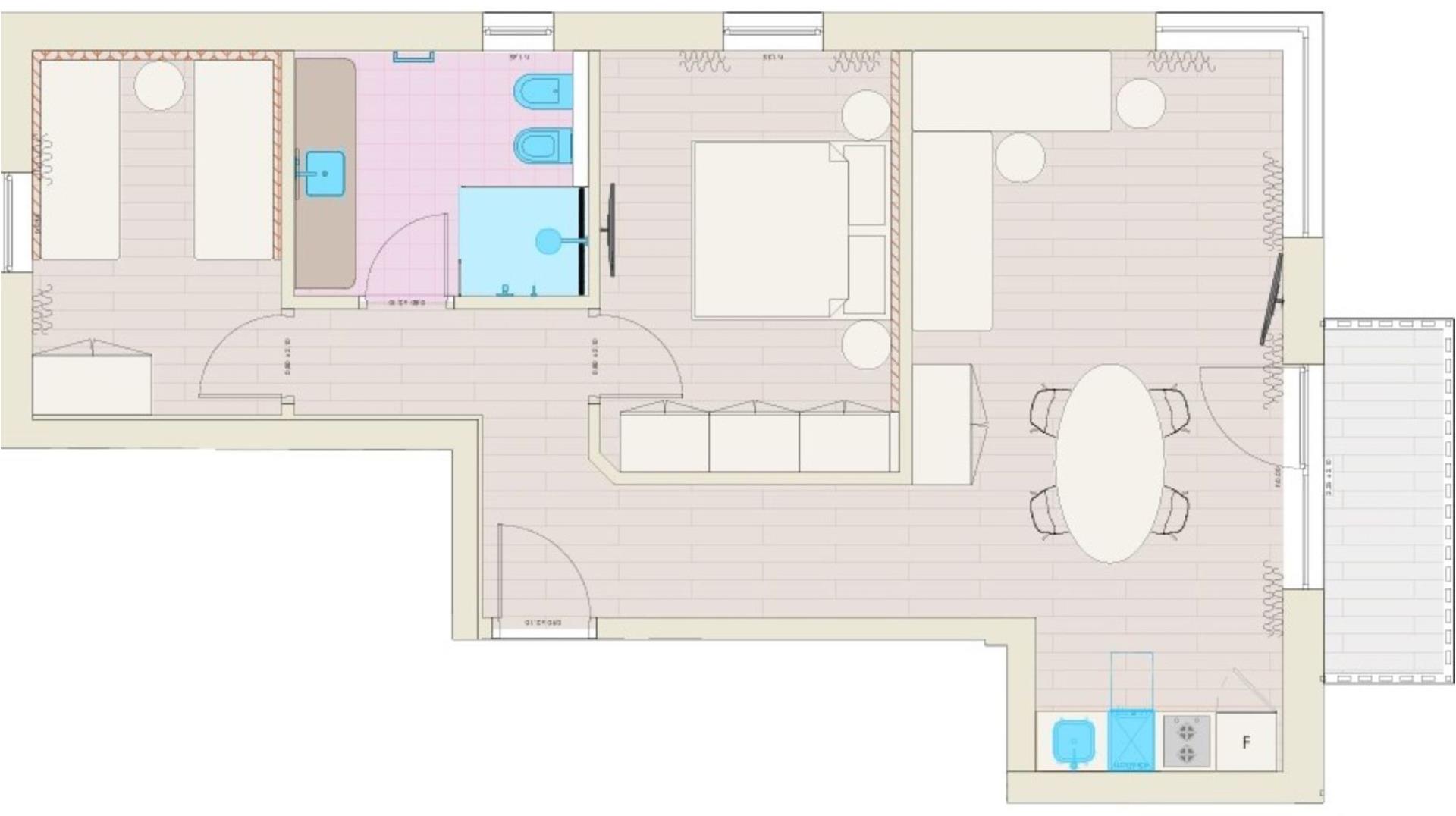 1 Wohnschlafraum mit Doppel- Couch und geräumiger Küche, 1 Doppelbettzimmer, 1 Zweibettzimmer, großes Badezimmer und Balkon